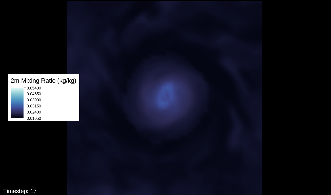 A note about the surface wind images, mostly for WRF experts and those who want to simulate the storm themselves: The images in this viewer do not represent the speed computation of the U10 and V10 speeds (the square root of the product of each of these added together). The reason for this is that the WRF’s surface wind computation is questionable for high-intensity storms. I’ve used an alternate computation that I think is more realistic for this type of system.