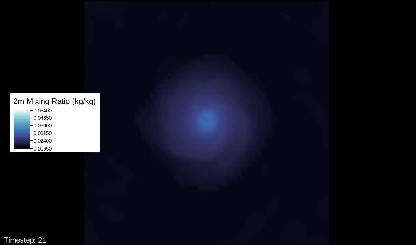 A note about the surface wind images, mostly for WRF experts and those who want to simulate the storm themselves: The images in this viewer do not represent the speed computation of the U10 and V10 speeds (the square root of the product of each of these added together). The reason for this is that the WRF’s surface wind computation is questionable for high-intensity storms. I’ve used an alternate computation that I think is more realistic for this type of system.