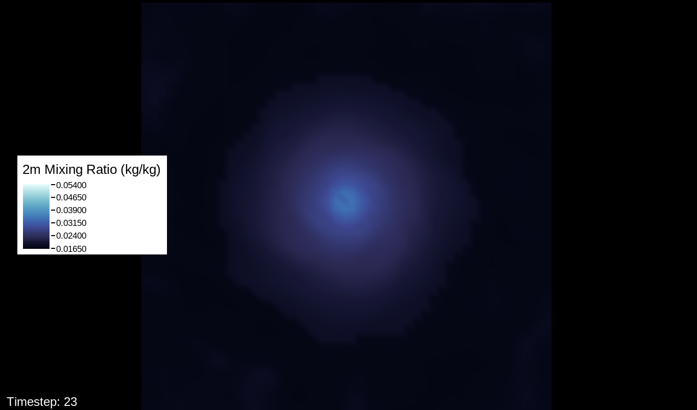 A note about the surface wind images, mostly for WRF experts and those who want to simulate the storm themselves: The images in this viewer do not represent the speed computation of the U10 and V10 speeds (the square root of the product of each of these added together). The reason for this is that the WRF’s surface wind computation is questionable for high-intensity storms. I’ve used an alternate computation that I think is more realistic for this type of system.