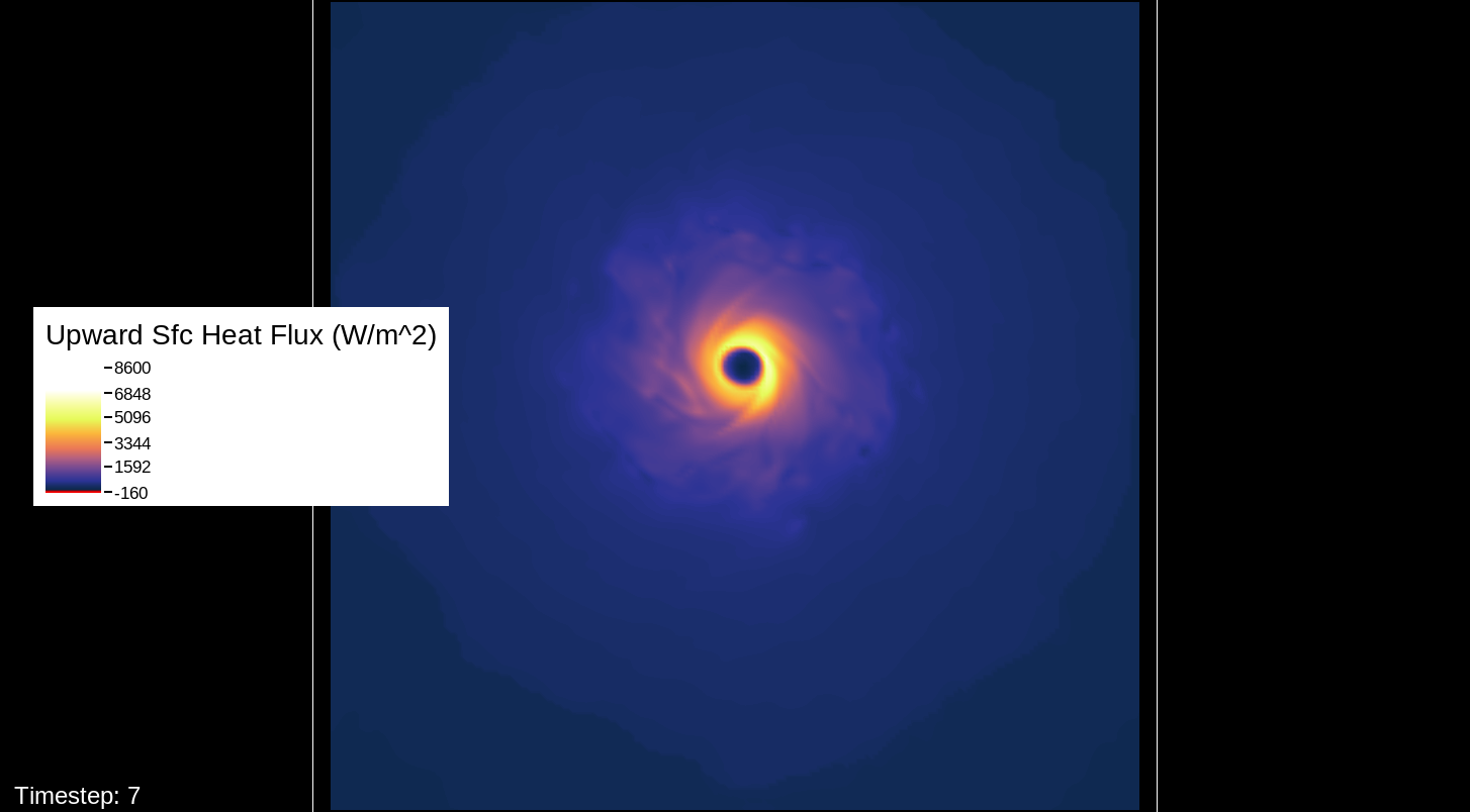 I know it isn’t a perfect solution, but there is only one defensible alternative I can see, and that is to turn off the PBL scheme for the storm simulation. I’m uncomfortable doing that, because it does need it to model its processes well at lower intensities. But I am using the assumption–supported by research, modeling, and observational data of intense hurricanes–that in such storms, planetary boundary layer mixing does not occur on a scale large enough to drive the wind speed down by more than a few knots. In the past, Hurricane Hunters typically used a 90% reduction factor for estimated surface winds (they would estimate surface winds at 90% of the speed of their measured flight-level winds). However, since they have been directly obtaining surface data from the stepped-frequency microwave radiometer, they’ve found that this 90% ratio does not always hold. Sometimes the surface winds are stronger than the flight-level winds. Sometimes they’re about the same. Sometimes they are weaker, but not 10% weaker. What hurricane researchers have found is that this ratio depends more on the processes of the storm itself than anything occurring in the planetary boundary layer. Therefore I claim this justification for declaring that, in my fictional hypercane, flight-level wind speeds (U,V level 0) are surface wind speeds.