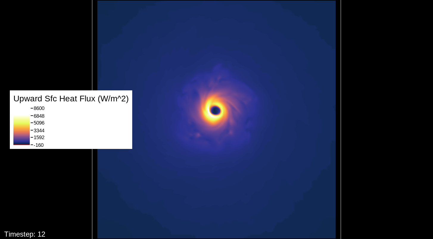 A note about the surface wind images, mostly for WRF experts and those who want to simulate the storm themselves: The images in this viewer do not represent the speed computation of the U10 and V10 speeds (the square root of the product of each of these added together). The reason for this is that the WRF’s surface wind computation is questionable for high-intensity storms. I’ve used an alternate computation that I think is more realistic for this type of system.