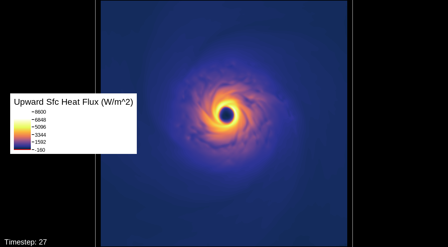 A note about the surface wind images, mostly for WRF experts and those who want to simulate the storm themselves: The images in this viewer do not represent the speed computation of the U10 and V10 speeds (the square root of the product of each of these added together). The reason for this is that the WRF’s surface wind computation is questionable for high-intensity storms. I’ve used an alternate computation that I think is more realistic for this type of system.