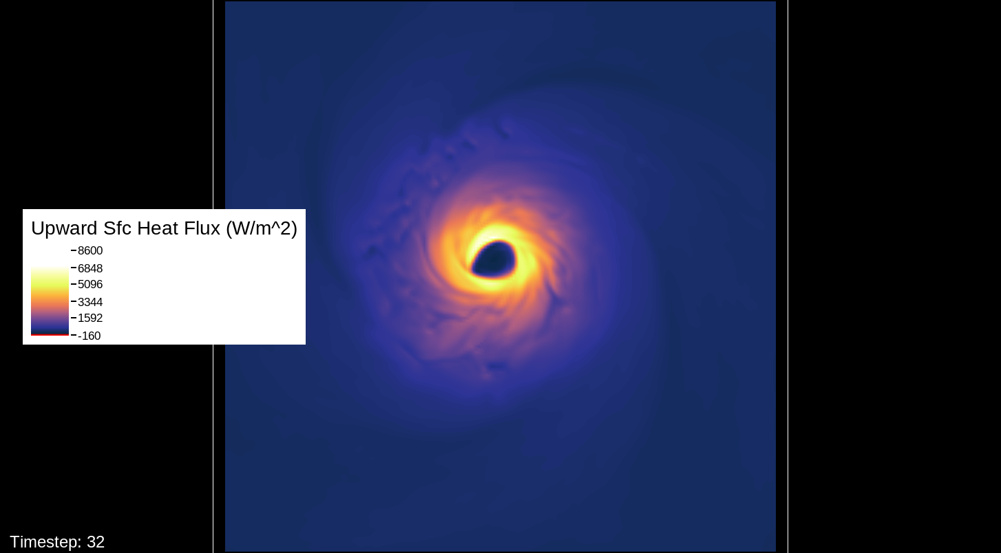 A note about the surface wind images, mostly for WRF experts and those who want to simulate the storm themselves: The images in this viewer do not represent the speed computation of the U10 and V10 speeds (the square root of the product of each of these added together). The reason for this is that the WRF’s surface wind computation is questionable for high-intensity storms. I’ve used an alternate computation that I think is more realistic for this type of system.