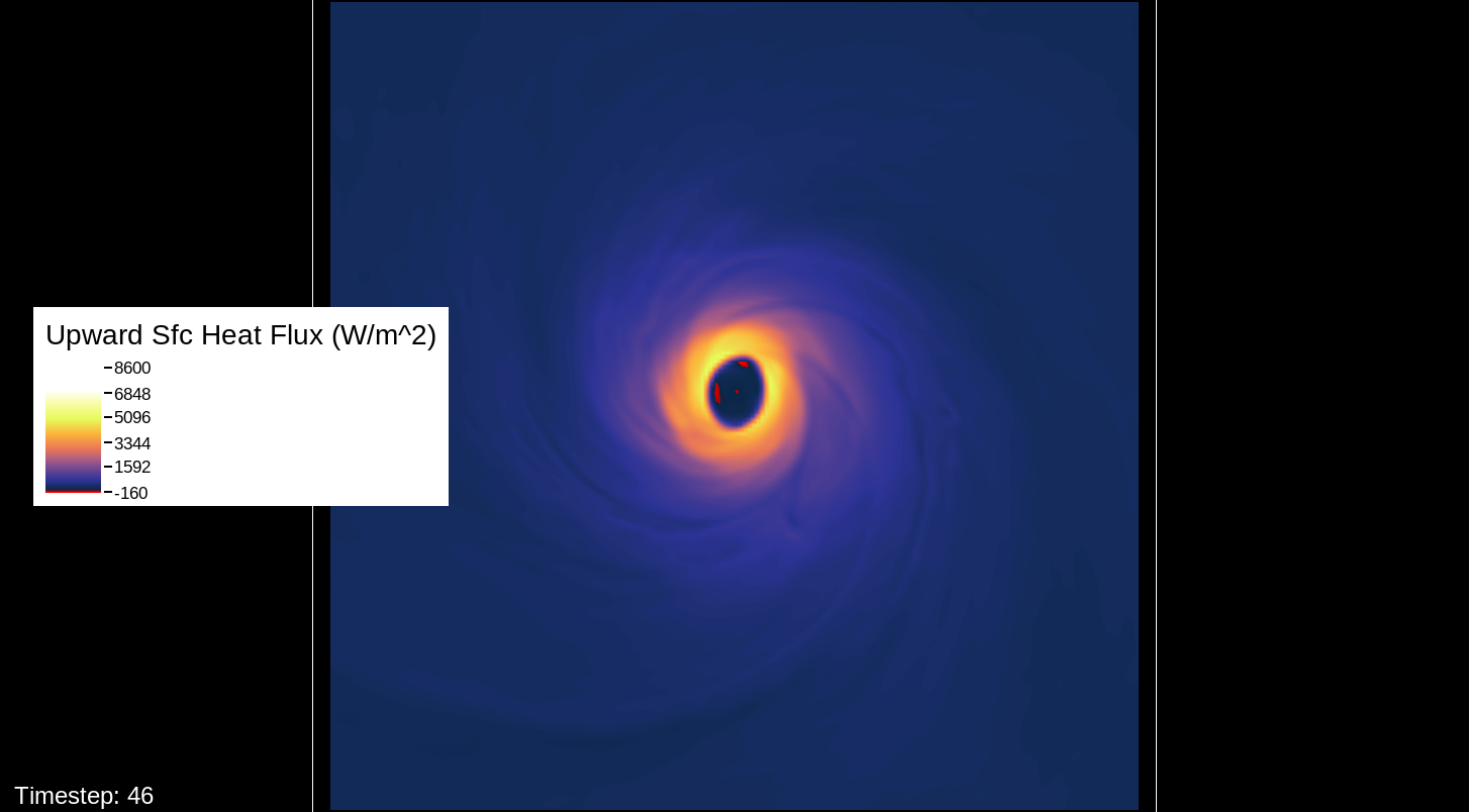 A note about the surface wind images, mostly for WRF experts and those who want to simulate the storm themselves: The images in this viewer do not represent the speed computation of the U10 and V10 speeds (the square root of the product of each of these added together). The reason for this is that the WRF’s surface wind computation is questionable for high-intensity storms. I’ve used an alternate computation that I think is more realistic for this type of system.
